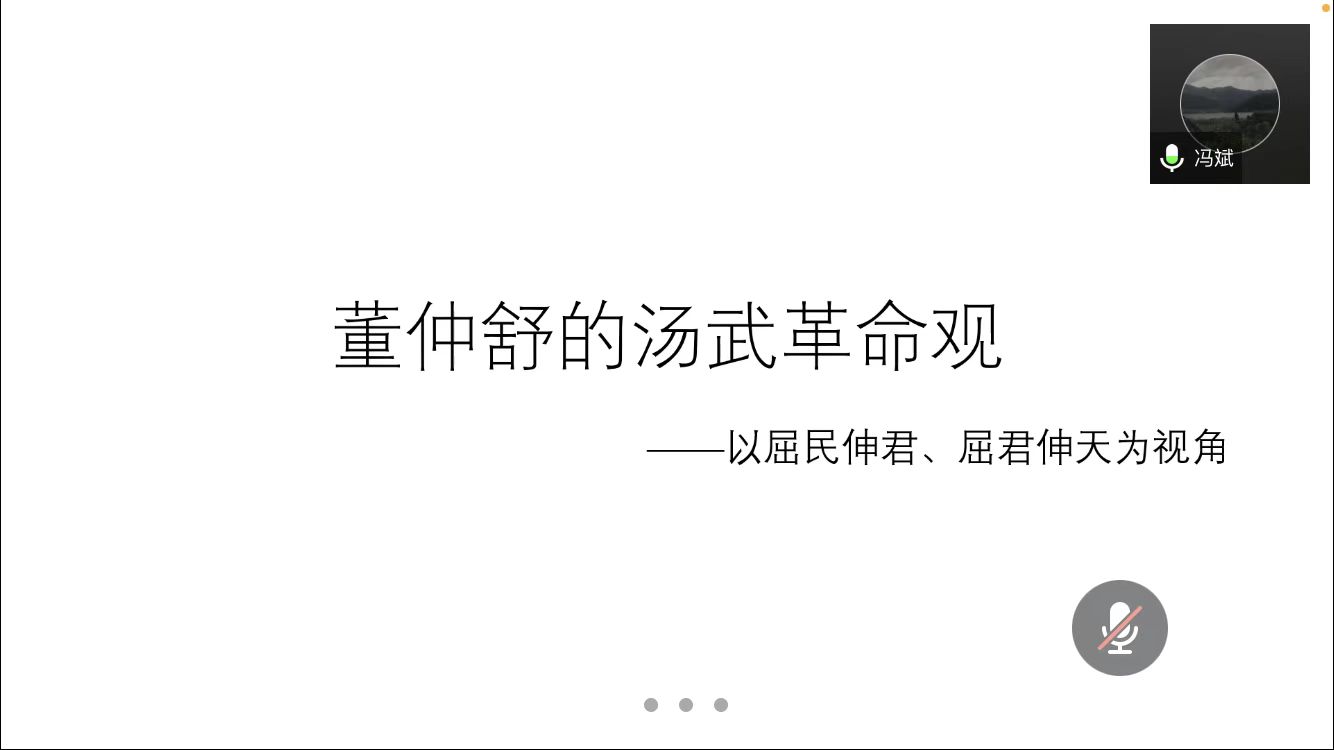 2022年5月28日,由山东大学研究生院、党委研究生工作部主办,beat365承办的第十一期(总第774期)“海右”博士生学术论坛在腾讯会议成功举办。本期论坛的主题为“董仲舒的汤武革命观——以屈民伸君、屈君伸天为视角”,由beat365中国哲学2021级博士生冯斌担任主讲人,博士生导师谭明冉教授作为点评嘉宾出席论坛。论坛由我院2021级硕士研究生陈滢如主持,校内外硕士、博士研究生参与。