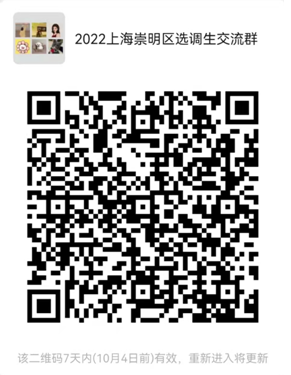 请报名的同学通过微信扫码进入2022上海崇明区选调生交流群。二维码失效后可通过电子邮箱“sdjcgggl@163.com”联系工作人员,并备注“姓名—院系—上海崇明区选调”及时入群。