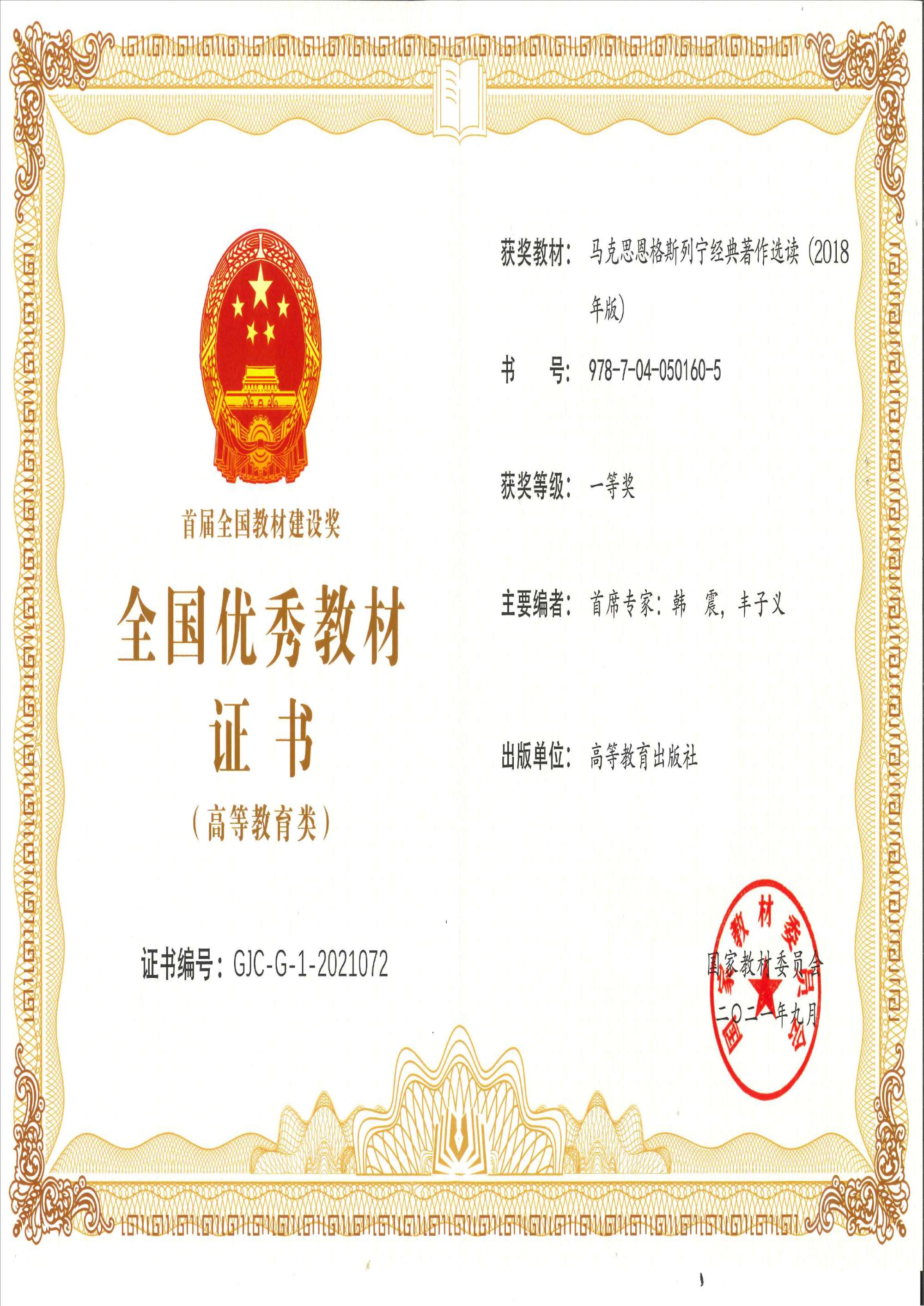 近日,国家教材委员会发布了关于首届全国教材建设奖奖励的决定,全国共有10种教材获得“全国优秀教材特等奖”,200种教材获得“全国优秀教材一等奖”。beat365院长刘森林教授作为主要成员编写的“马工程”教材《马克思恩格斯列宁经典著作选读》荣获首届国家教材建设奖一等奖。